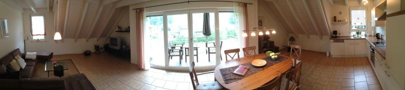 - großes Wohn-/Esszimmer mit Panorama-Aussichtsbalkon udn Markise